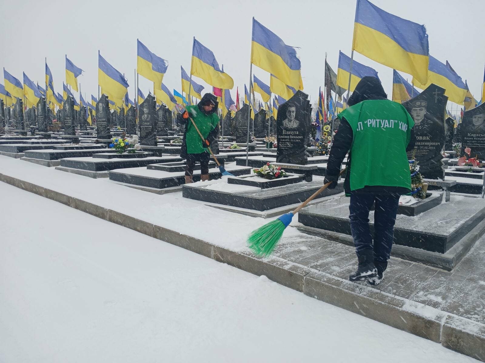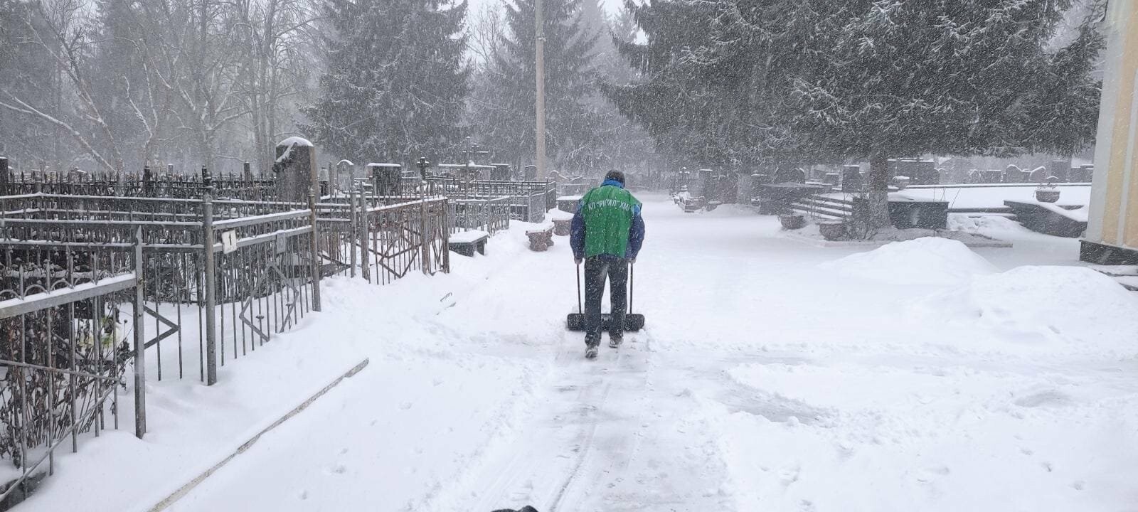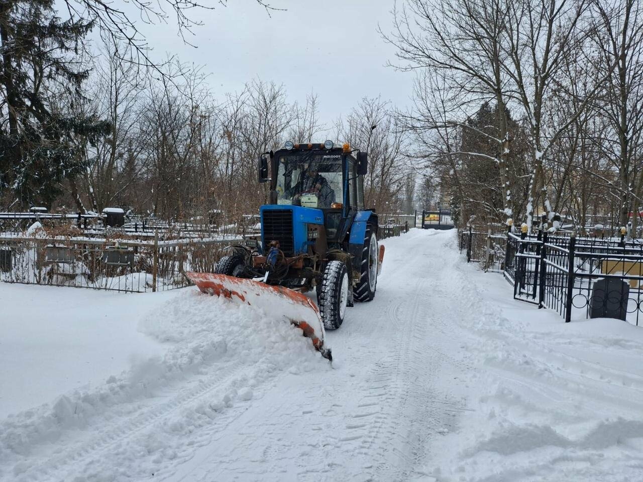 Основну увагу приділено розчищенню снігу на територіях меморіальних комплексів, центральних і прилеглих алей кладовищ, під'їзних шляхах та тротуарах.